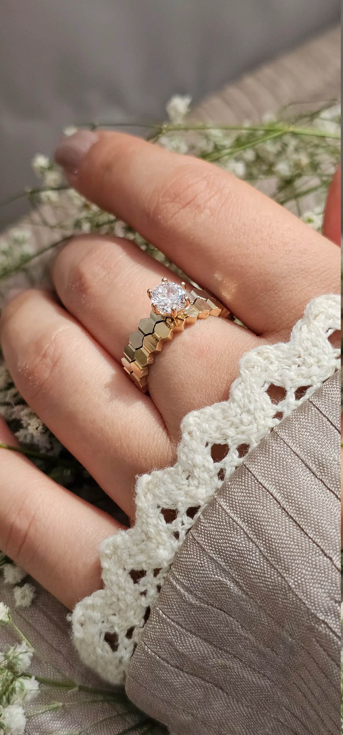 انگشتر سولتیر طرح لانه زنبور